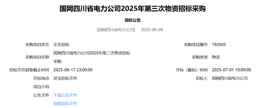 【招标公告】国网四川省电力公司2025年第三次物资招标采购项目招标公告